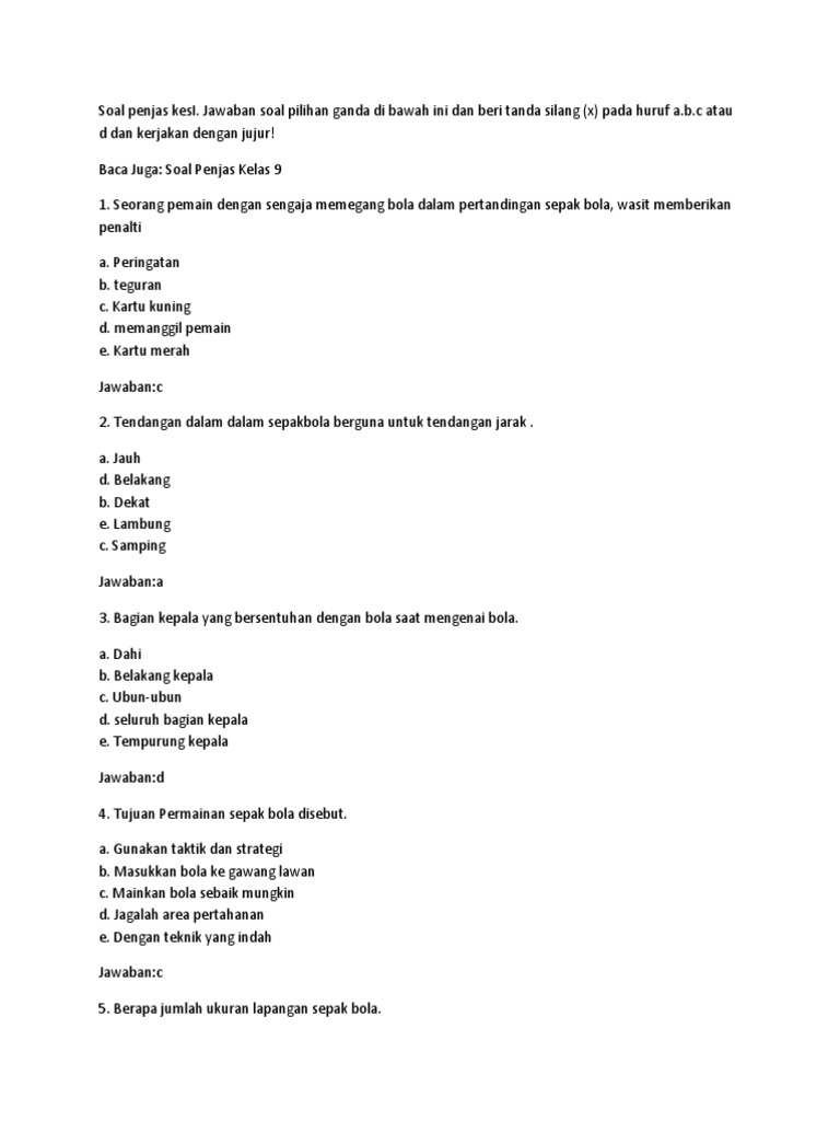 Contoh soal penjas kelas xii semester 1 beserta jawabannya