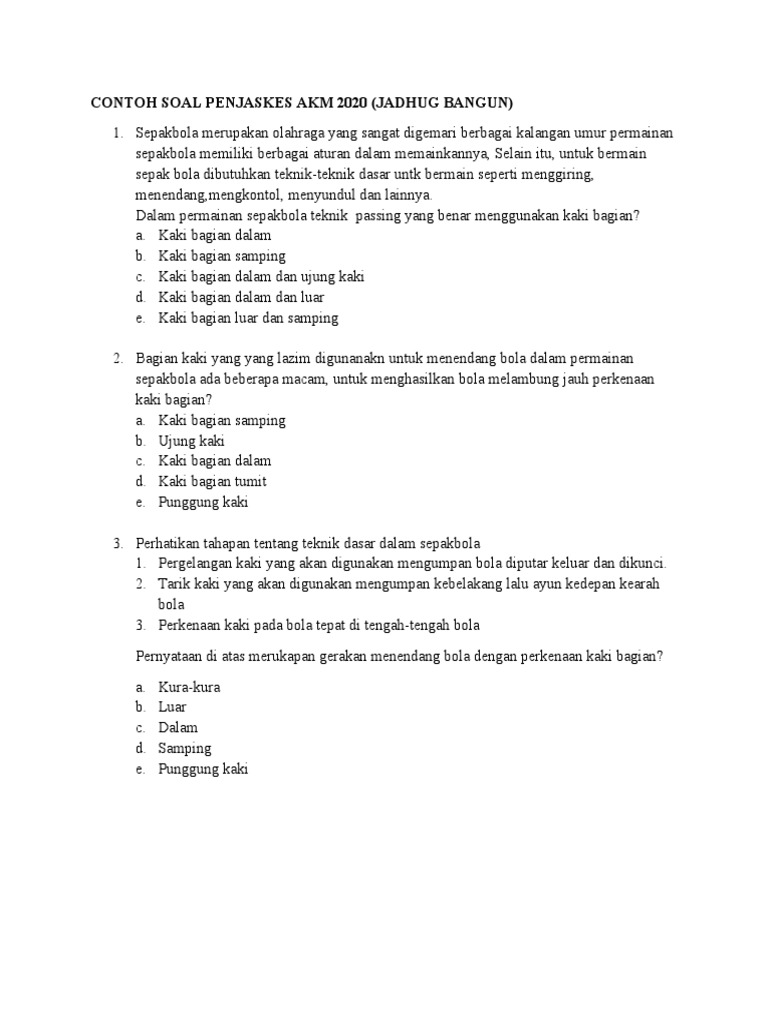 Soal-soal Penjaskes kelas 1 SD yang disajikan di atas hanyalah contoh. Guru dapat mengembangkannya lebih lanjut sesuai dengan materi pembelajaran yang spesifik dan karakteristik siswa di kelasnya. Dengan pendekatan yang tepat, soal-soal ini tidak hanya menjadi alat evaluasi, tetapi juga menjadi sarana untuk memperdalam pemahaman, menumbuhkan minat, dan membentuk kebiasaan hidup sehat yang akan bermanfaat sepanjang hayat bagi anak-anak kita. Mari jadikan pembelajaran Penjaskes semakin aktif, menyenangkan, dan bermakna!